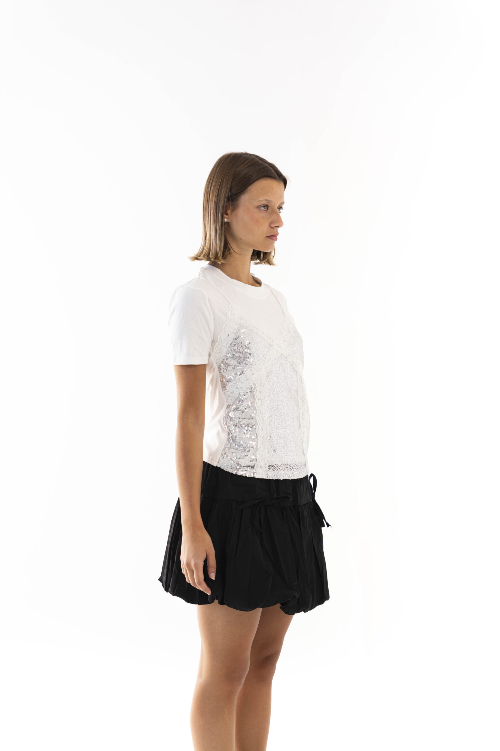Remera con musculosa de encaje, Medidas: Largo: 52cm Ancho: 38cm